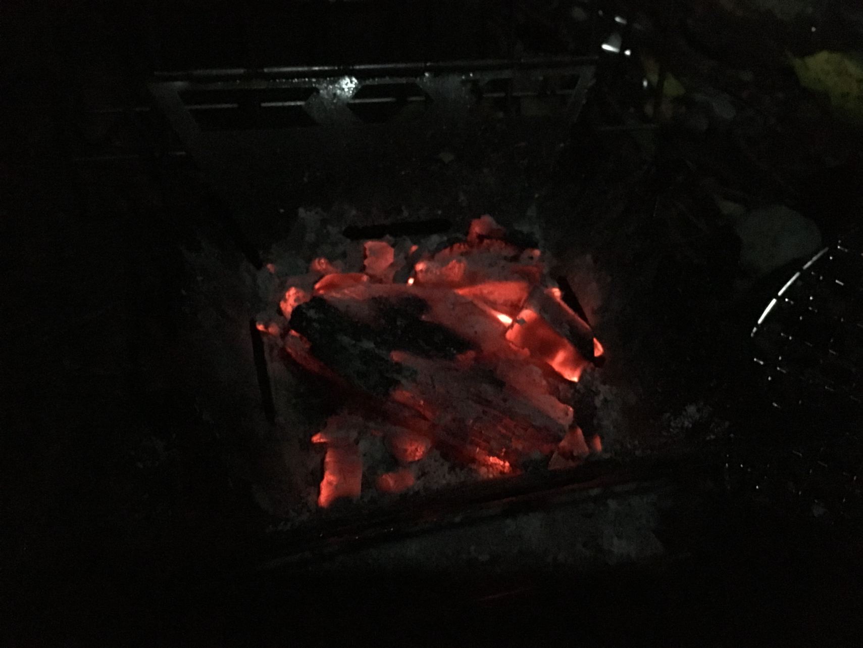 満腹の中ほろ酔い状態で炭火を見つめて、ひとりぼっちキャンプファイヤー。