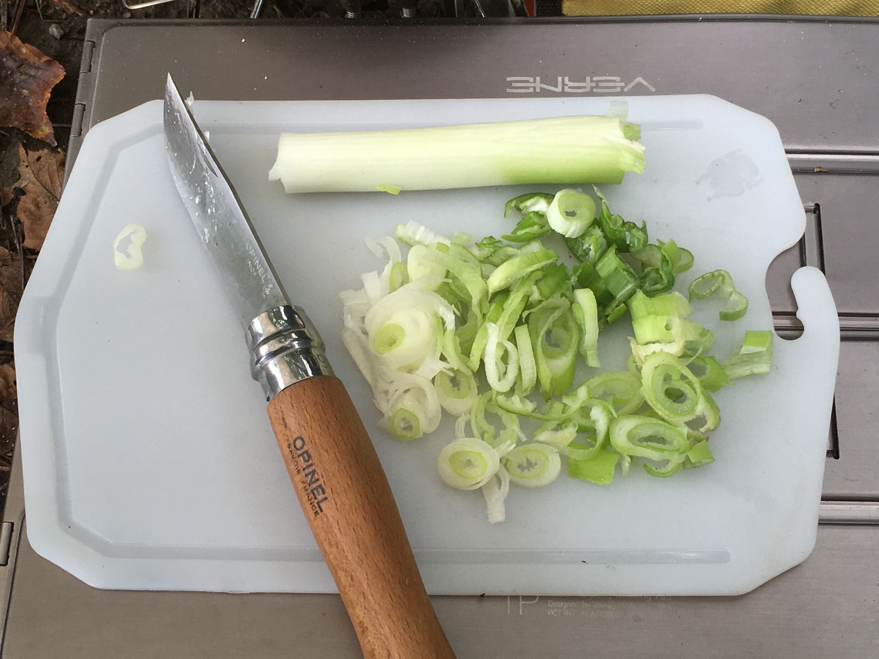 オピネルでしっかり葱を刻みます。ラーメンに葱だけは絶対に入れます。
