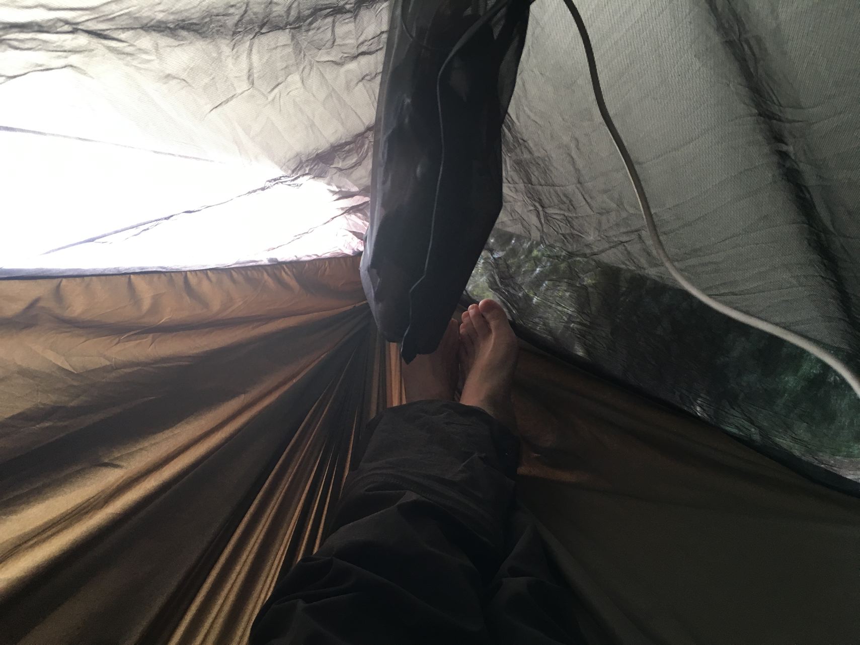 こんな場合ハンモックは最強です。宙に浮かんでるから全く問題なしです。