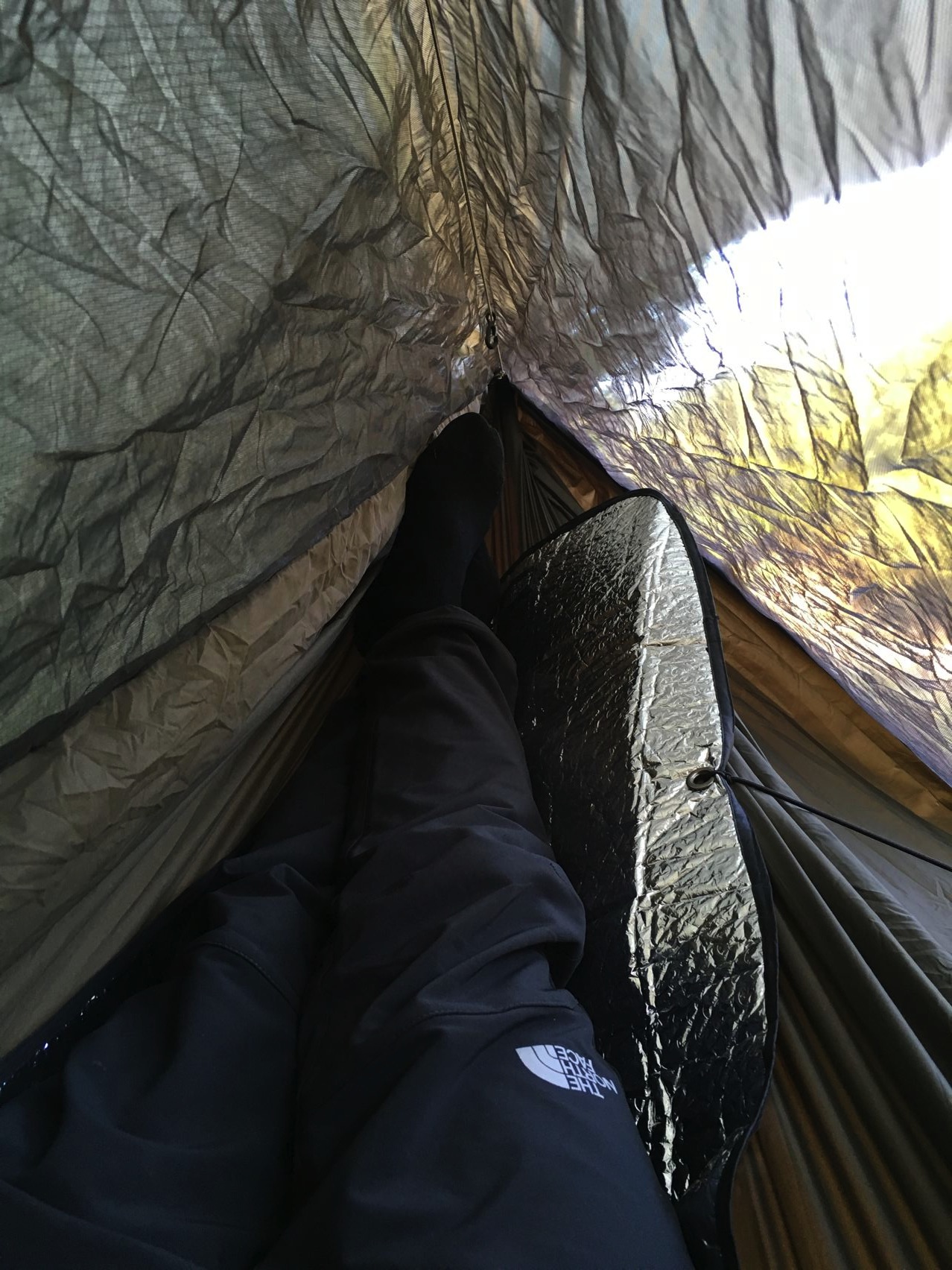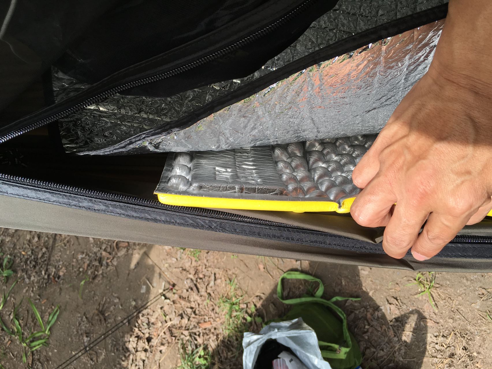 今回の断熱は、ちょっと寒くなってきたので、サーマレストのマットと純正ぷちぷちとエスケープライトビビィと夏用シュラフ。丁度いい感じで熟睡出来ました。マットはサーマレストだけでもいいのですが、純正ぷちぷちでかぶせるとズレ止めになるので快適なのです。