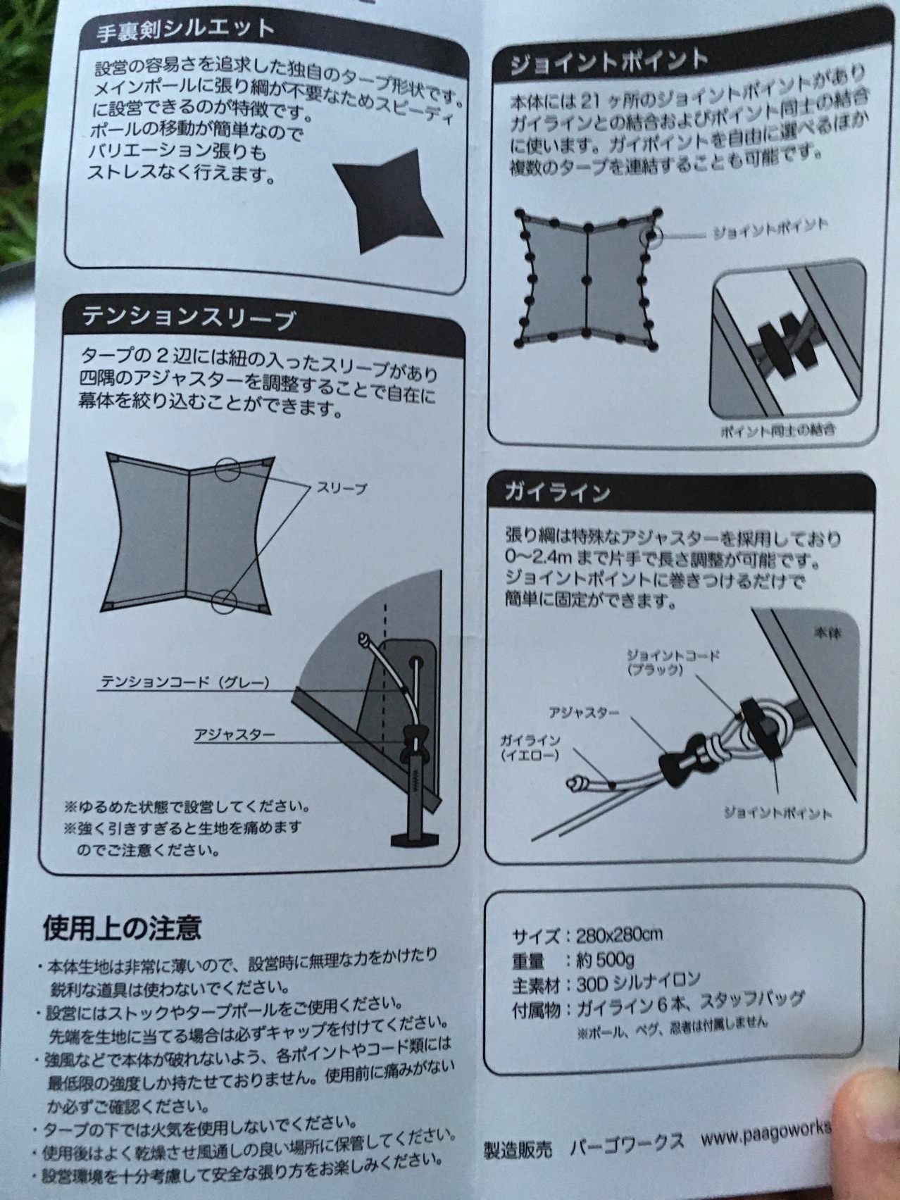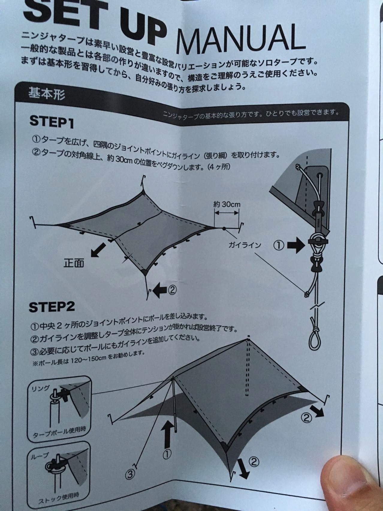 夕べは張れたニンジャタープが見れなかったのでじっくり見てみましょう。