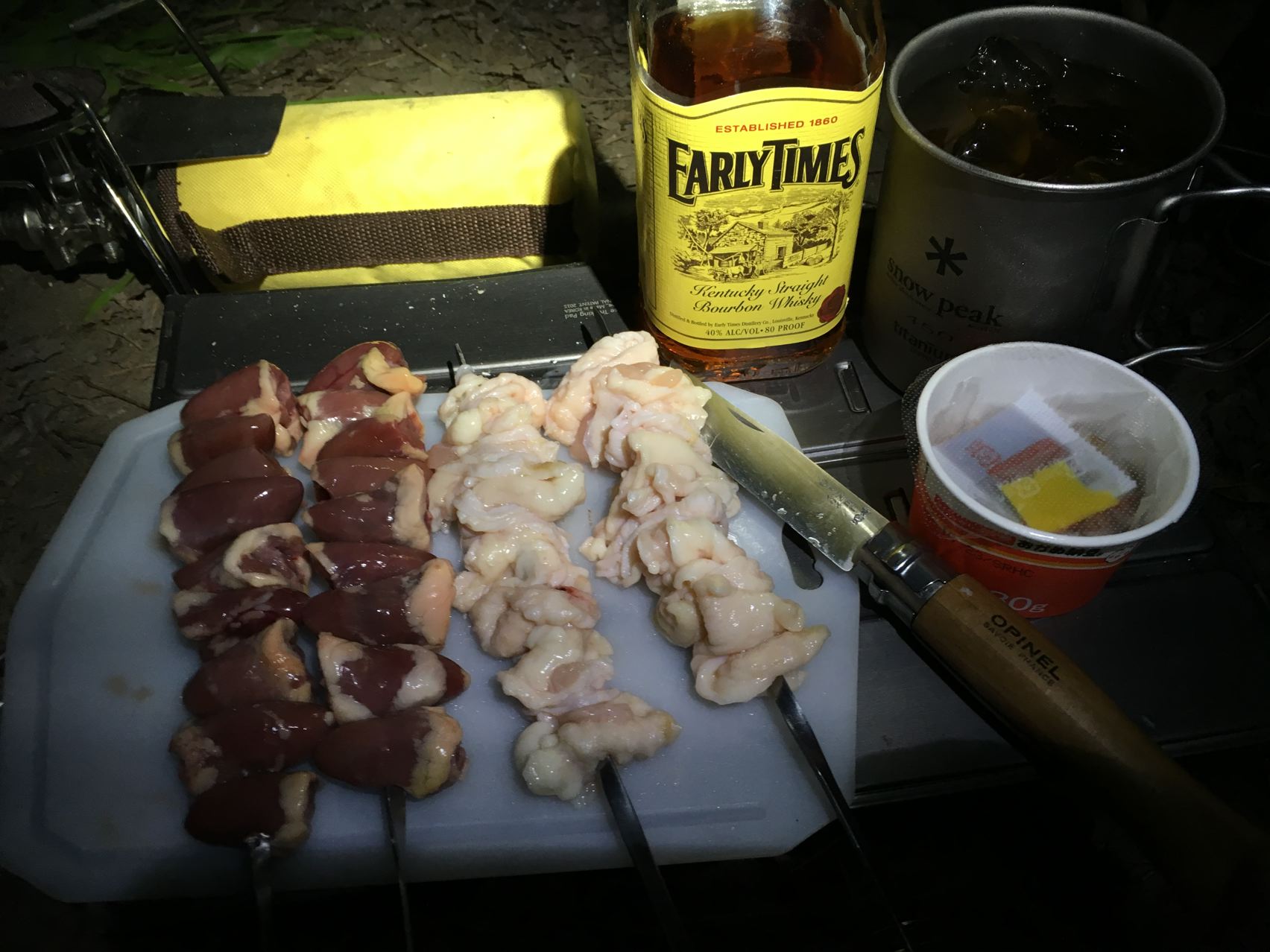 岩手山南部赤鶏の、ハツ、皮、モモを丁寧に串刺し。焼鳥で一番大変なポイント。