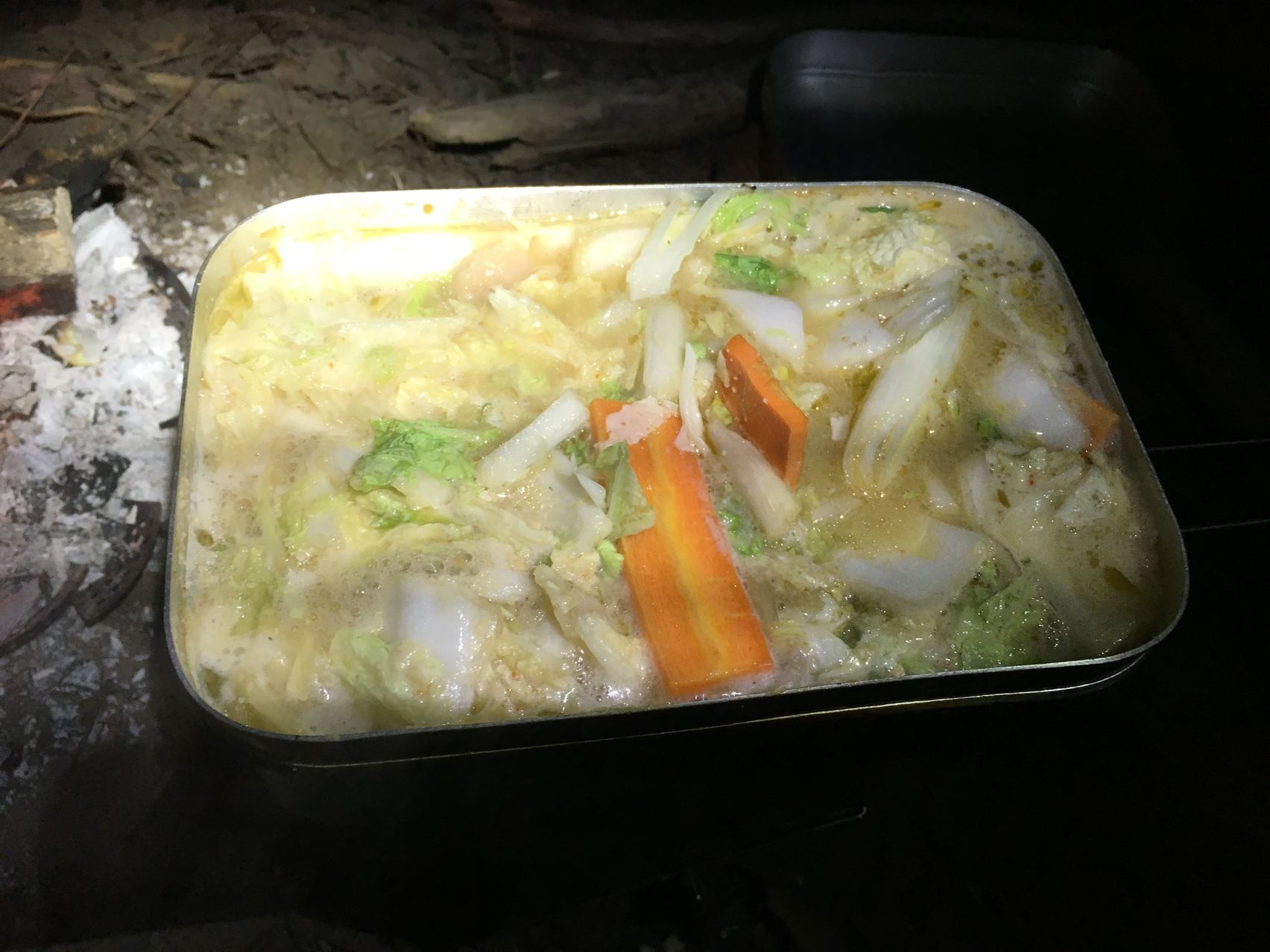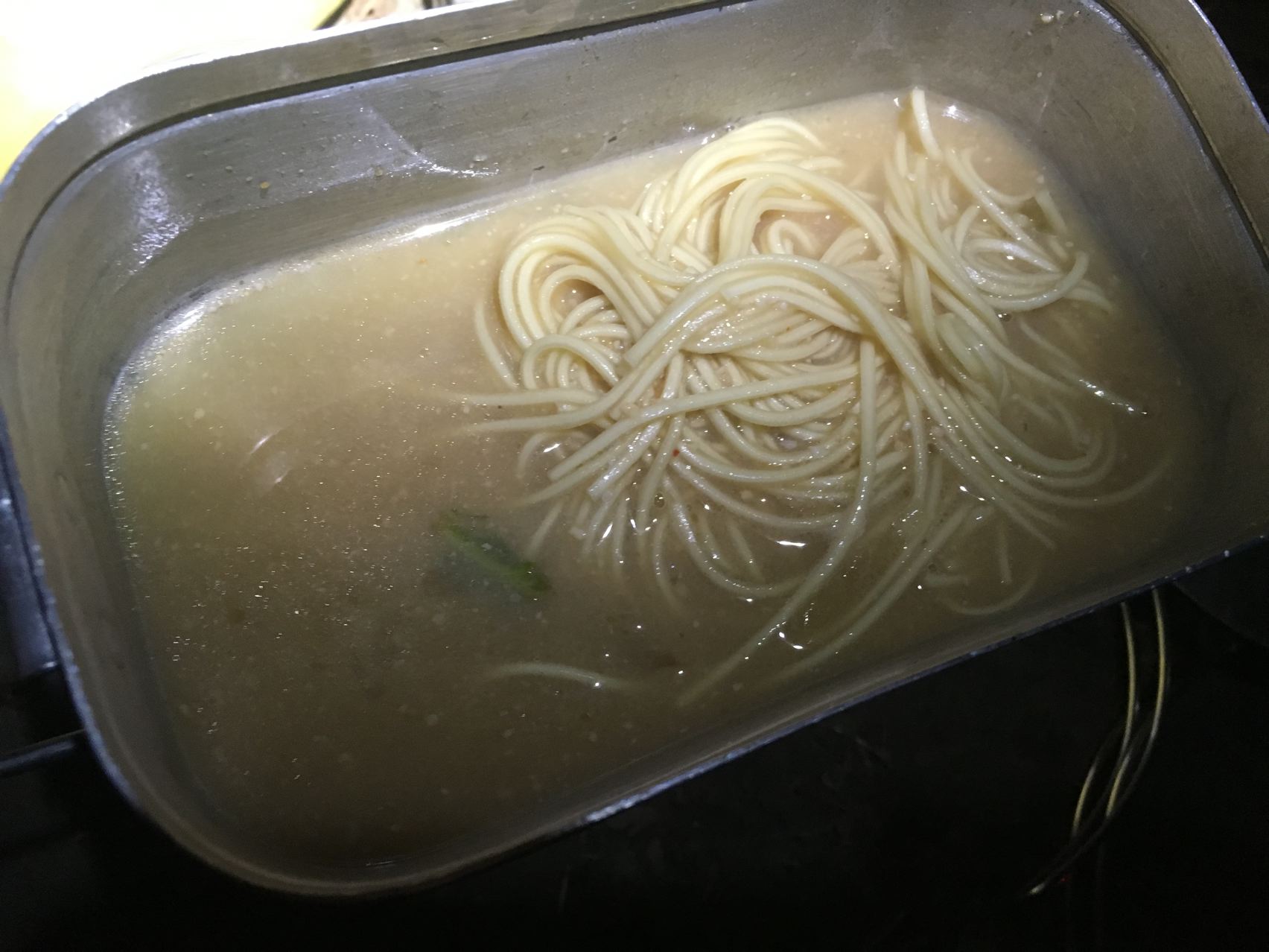 〆には鍋の汁にて棒ラーメン。ちょろっとお裾分けで、うみゃ〜!