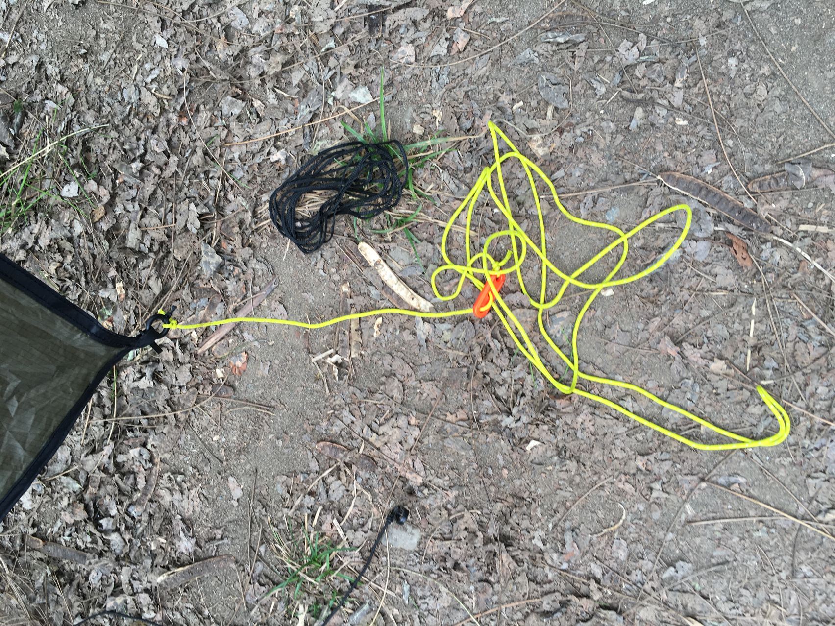 今回からガイラインを黄色に自在をオレンジに変えました。純正の黒だとちびっこが見えないらしくよく引っ掛けられていました。これでOK!