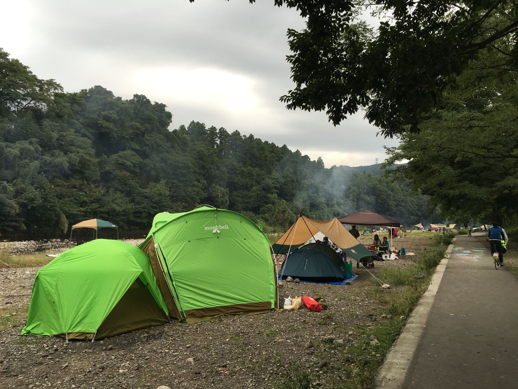 帰りながら見てみると巾着田のキャンプサイトはこの位の人出。結構秋でもどでかテント多いですね。