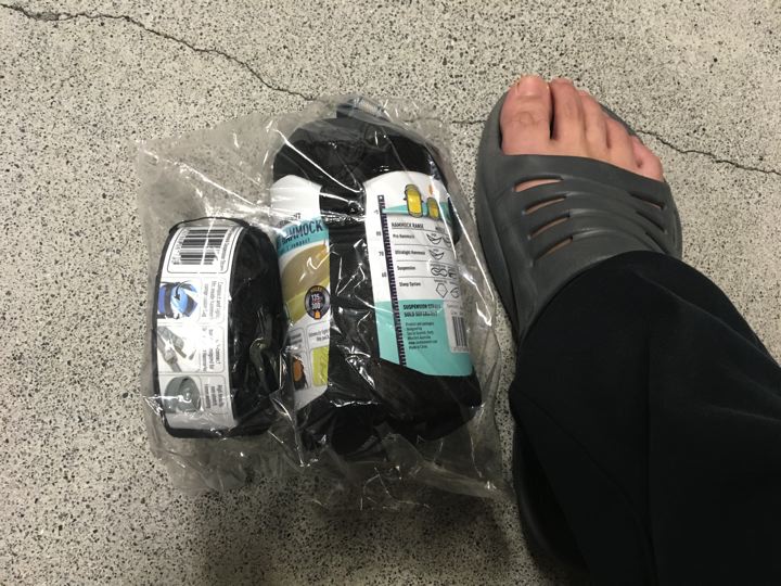 ハンモックとストラップ合計だと367g。ムムゥ。ハミングバードに完敗やん。泣