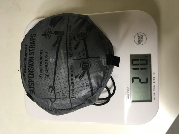 (ハミングバードは、ハンモック147g+ツリーストラップ62gの合計209gとな!)