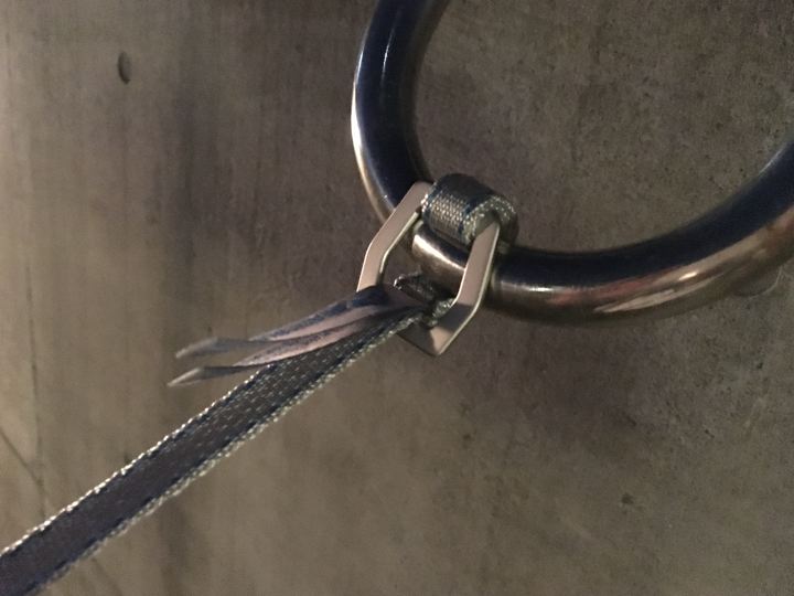 木の代わりにステンの鼻輪に通します。アルミ金物の輪っかに通すだけ〜。