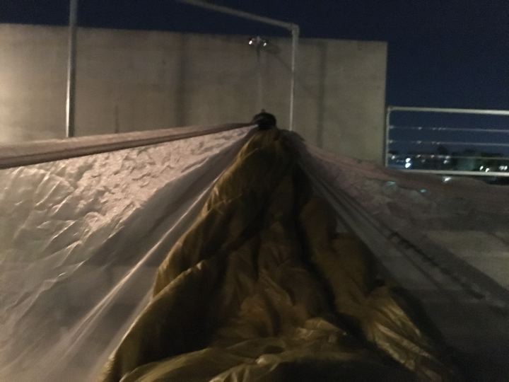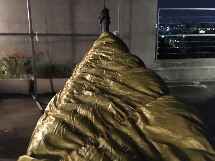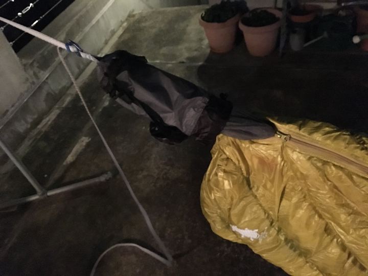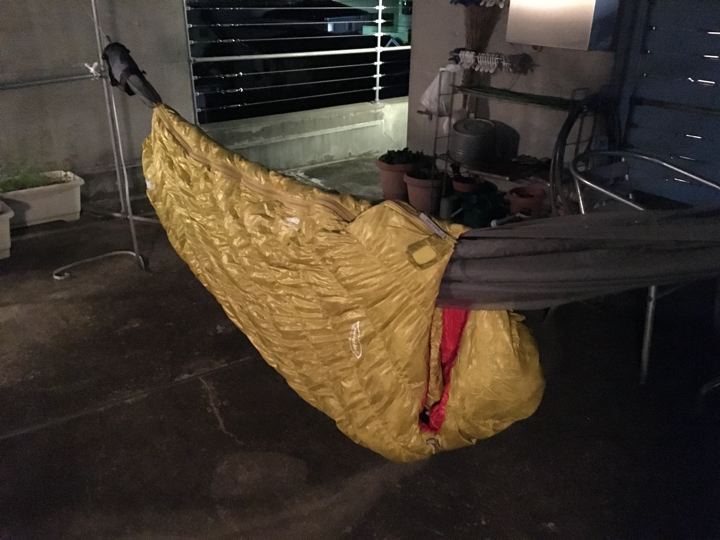 シュラフも出して寝て試す。やはり背中側のロフトは潰れてやや寒いかも〜