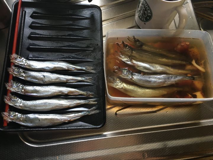 ししゃもが余ったので、オイルサーディンにしてみることに。冷凍していつか食べよう。イヒヒ