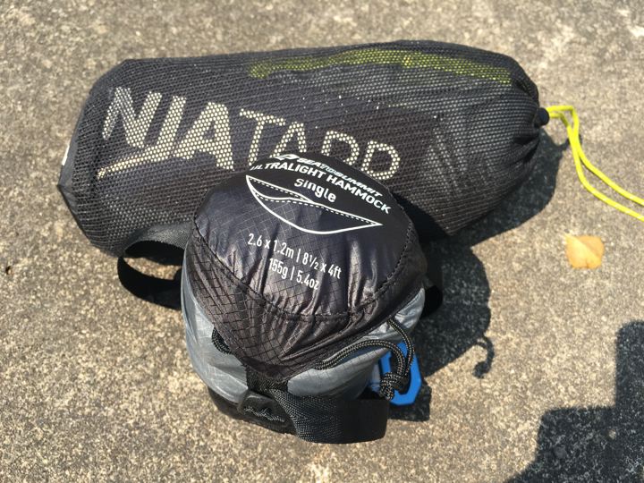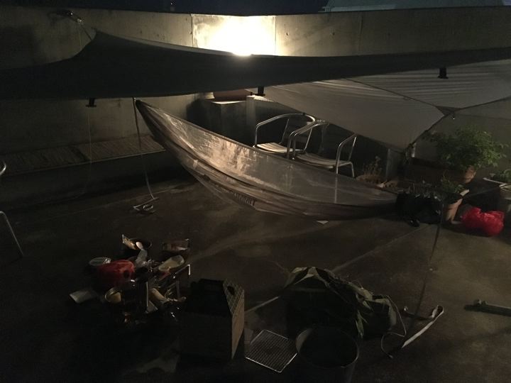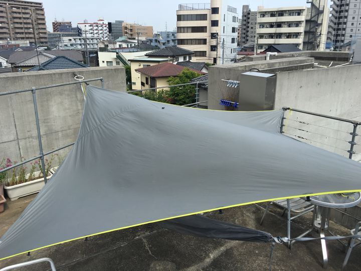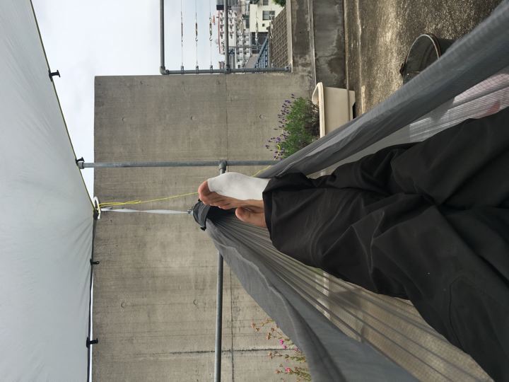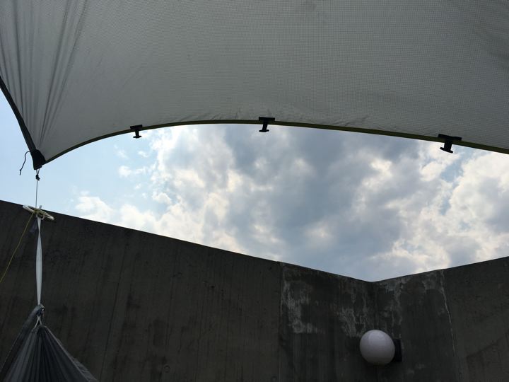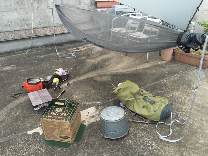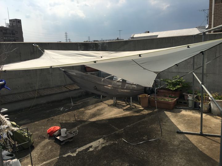 ニンジャタープとULハンモックを持って屋上に上がります。