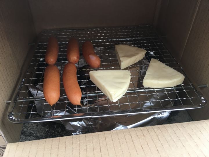 ここで簡易ダンボールスモーカーとスモークウッド登場。