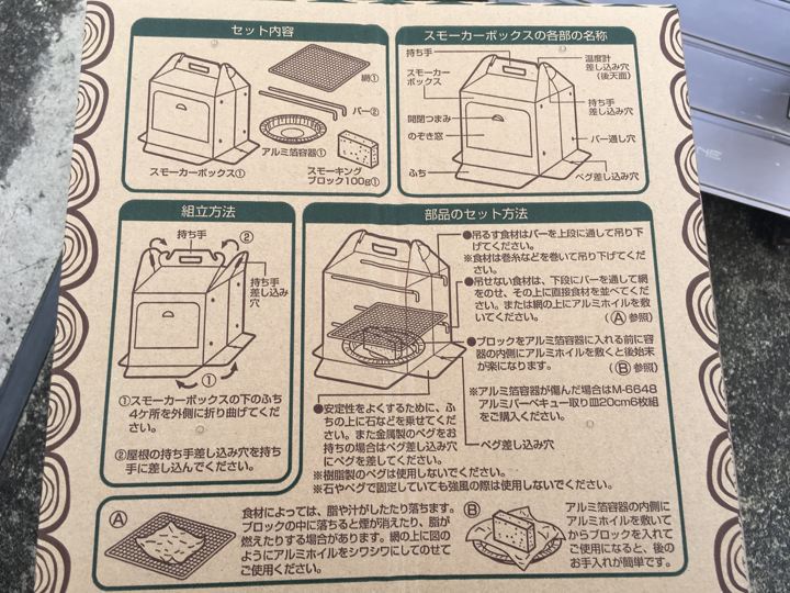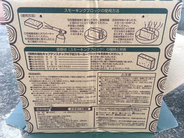 去年の6月中旬頃のお話。いつかやってみたいと思っていた燻製をやろうとWILD-1さんで簡単ダンボールスモーカーを買ってみたのですが・・・。