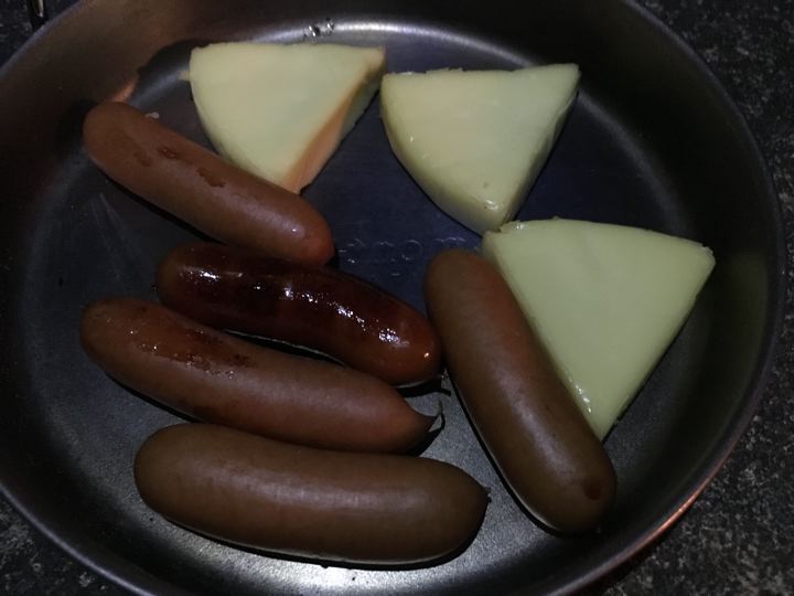 まずは簡単そうなやつから。ソーセージと6Pチーズ。