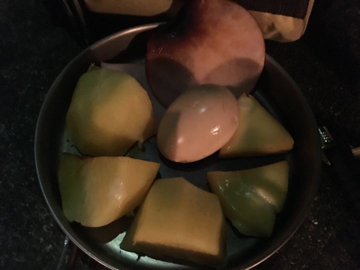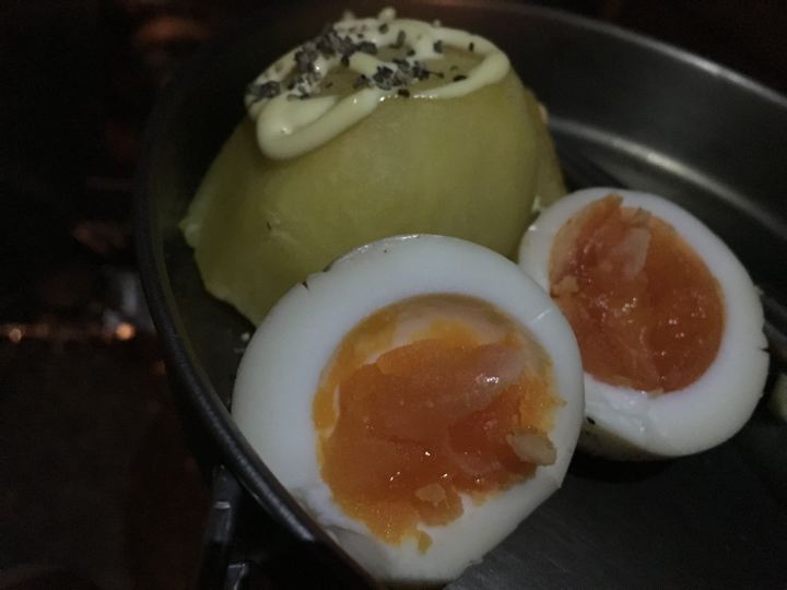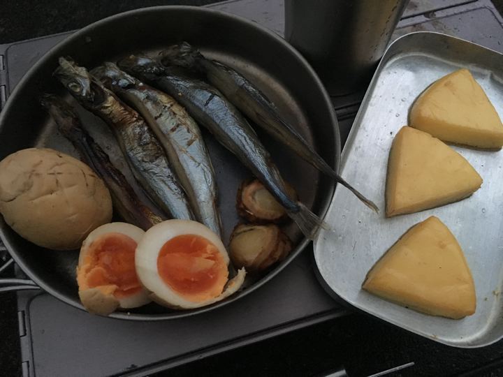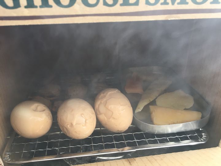 チーズは昨日の失敗で、溶けちゃうからメスティンの蓋の上で燻しました。OK!