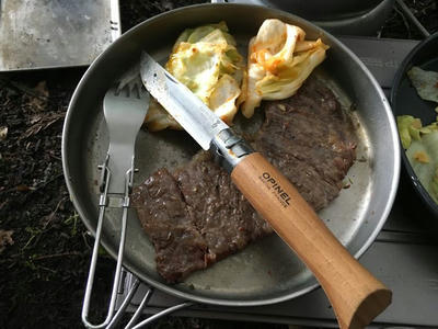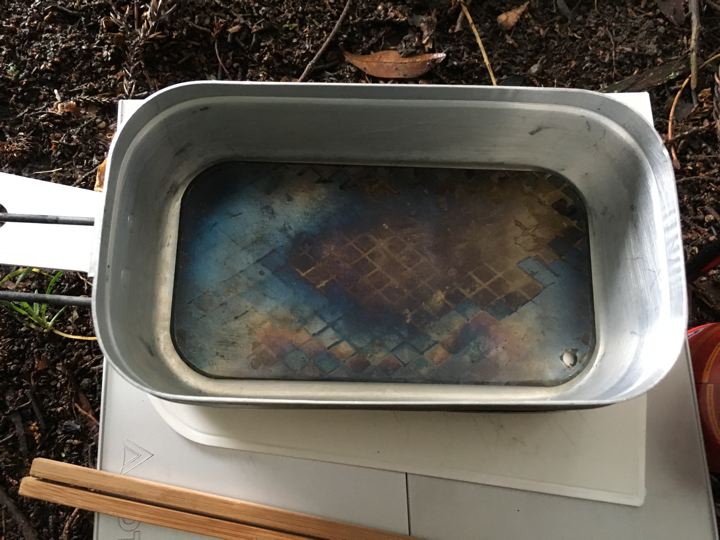 メスティン内に収まるリョウさんのダイゾー鉄板。いいなぁ。