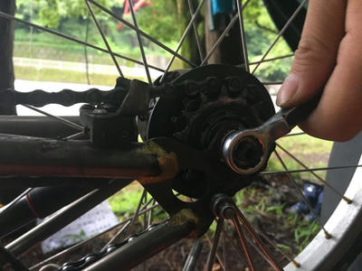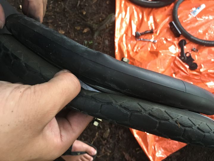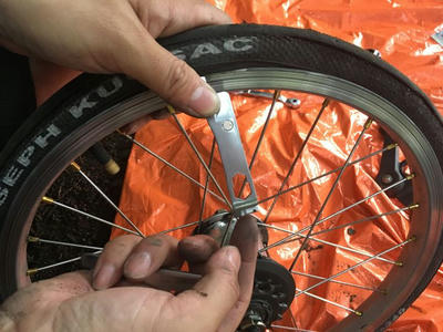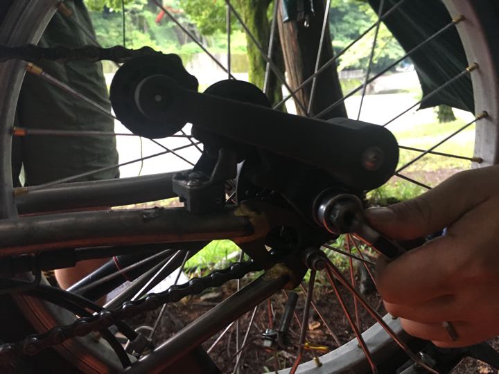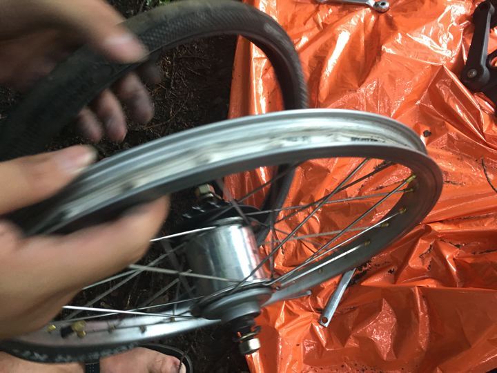 さすがリョウさん!高校生の時に自転車屋さんでバイトしていたらしくパンク修理はプロ!