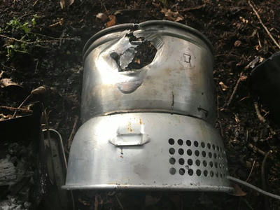 そしたらなんとぉーっ!今まで何度もやってたのに、ストームクッカーに穴があいたった!