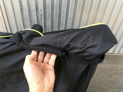 takahashiさんに教えてもらったジェリコスで輪行時のブロくん担ぎ上げも肩に食い込みません。