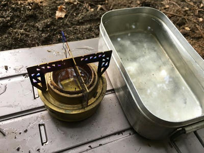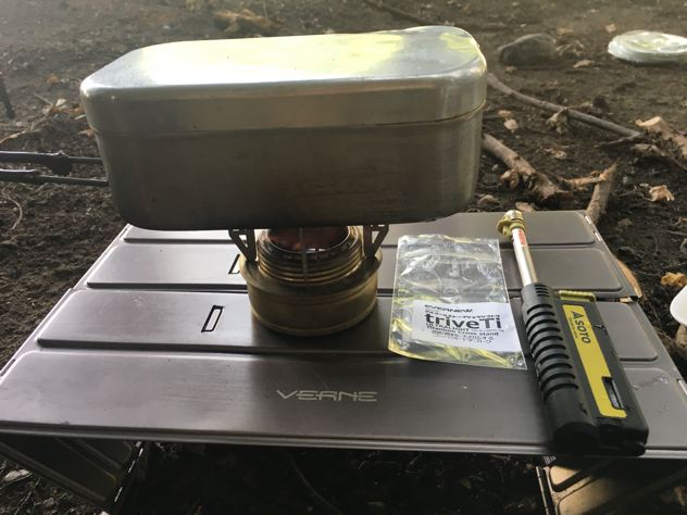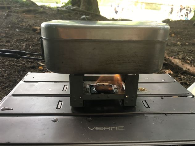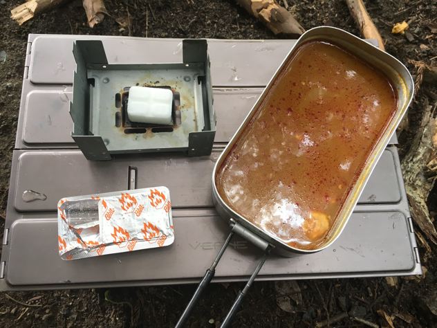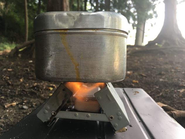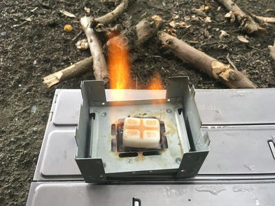 エスビットの純正固形燃料に、ファイヤー!た、確かに、臭い!