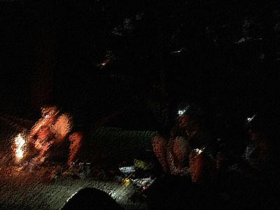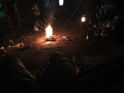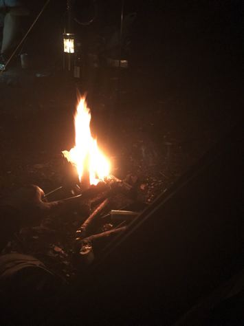 んで、ワイワイガヤガヤと焚火しながら夜は更ける。たぁさんはなんでもフライパンで調理。むむぅ。やるね。そしたらなんとぉーっ!たぁさんは、なんと葉巻を吸ってました〜!葉巻吸ってる人に会ったのなんて初めて〜!謎〜!