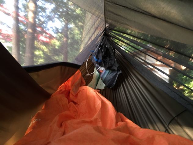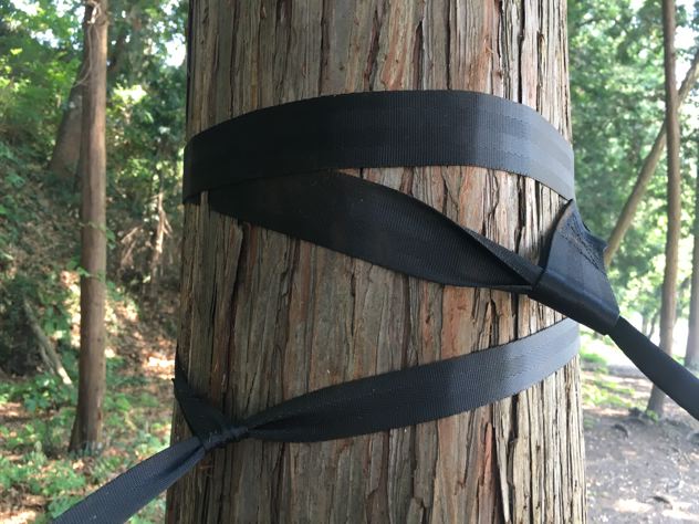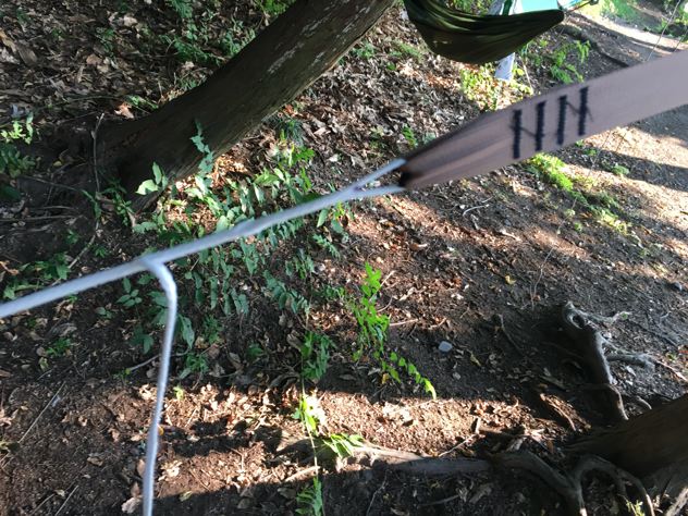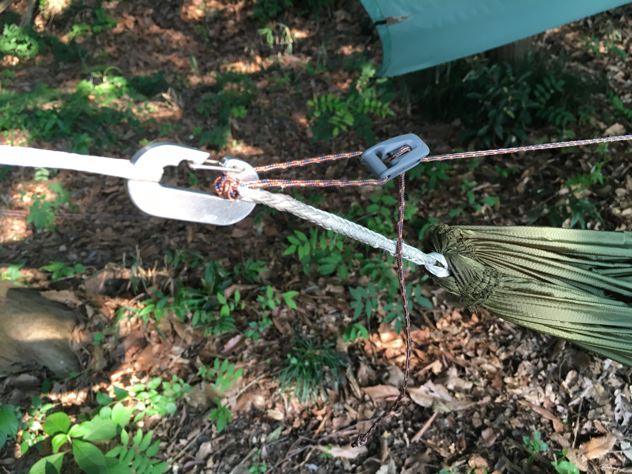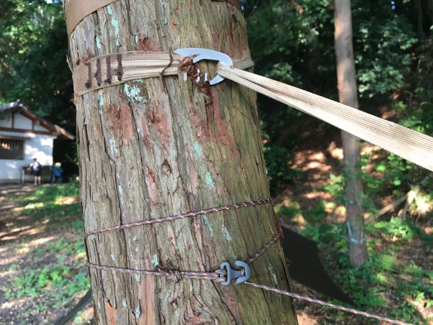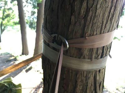 ハミングバードハンモックのツリーストラップにダッチクリップ!やるね。