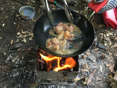 初めてのポケットストーブでチキンビリヤニを作ります。