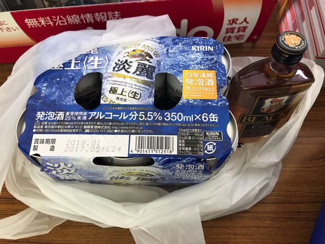 おそらくスーパーバリューによってお買い物か?発泡酒6本も飲むの〜!更にウイスキー?
