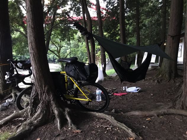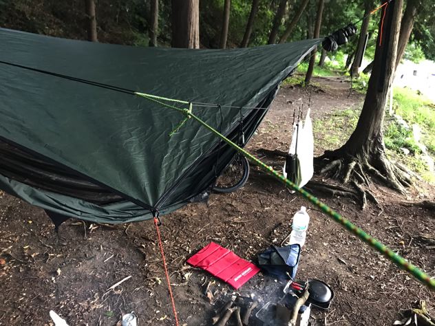 さささとヘネッてますが、なぜかハンモックとタープは別張り。ヘネシーハンモックはハンモックとタープがいっぺんに張れるのがいいのに。謎です。そして、たぁさん号のパッキングは相変わらず興味深い。