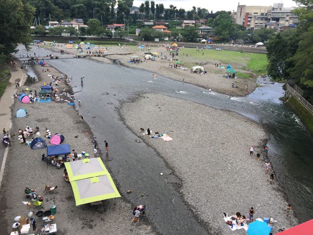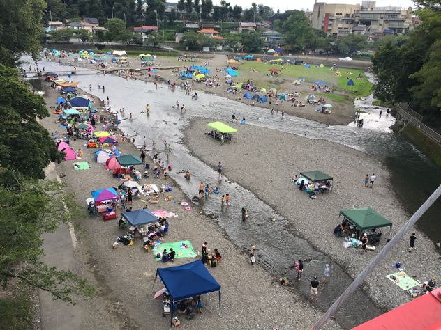 飯能河原、ひゃっほ〜!お盆休みなのでそこそこの人出。