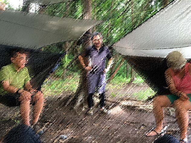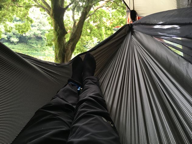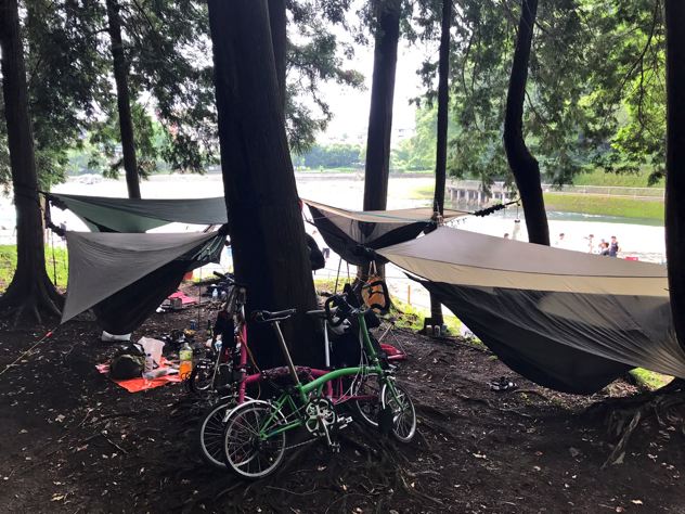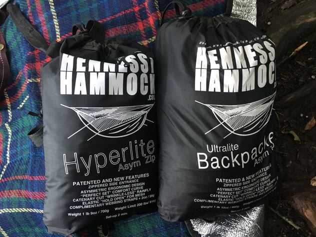 仲良くサークル張り。4つの全部違う種類のヘネシーハンモック!