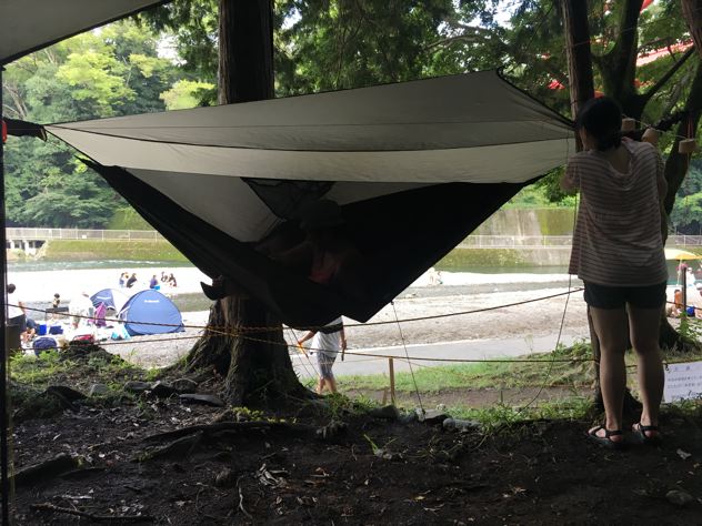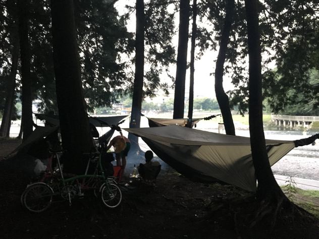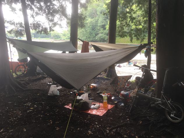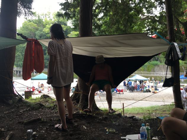 去年のお盆休み頃のお話。経緯は忘れましたが、以降のレギュラーメンバーが飯能河原に集結しました。たぁあさんが別荘と言い始めた頃ですね。