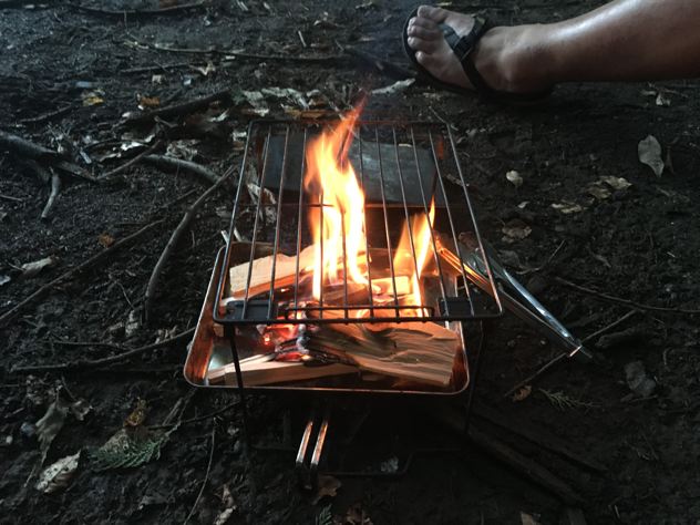 リョウさんはMYOGで焚火。