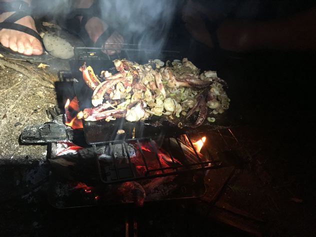 リョウさんsatomiさんは、この時流行りのダイゾー鉄板でイカ焼いてます。