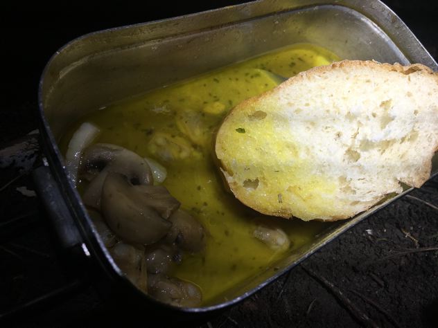 僕ちゃんはアヒージョ。あひ〜!もちろんバゲットつけて食べます。うみゃ〜!