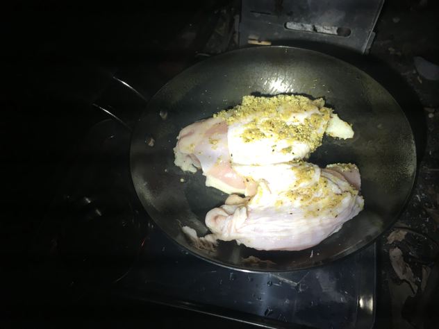 たぁさんは、ちびパンで鶏モモ焼いてます。