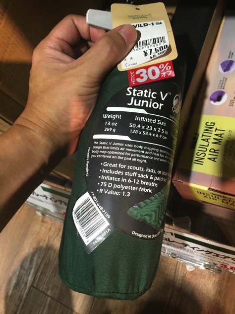 以前から気になっていたクライミットのエアマットStatic V juniorが30%OFFとな!速攻ゲット!