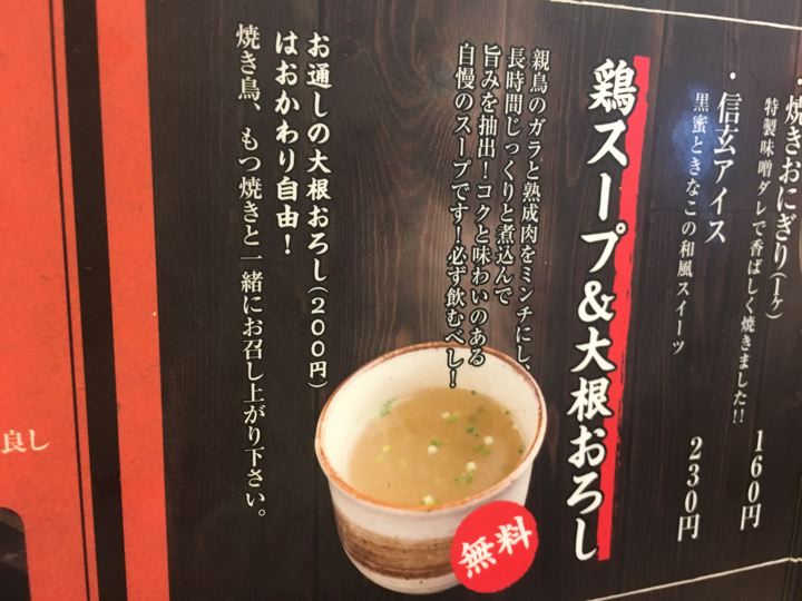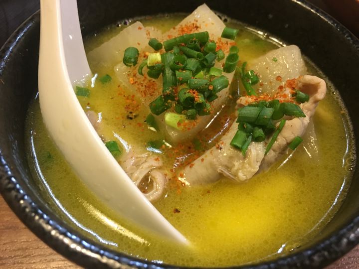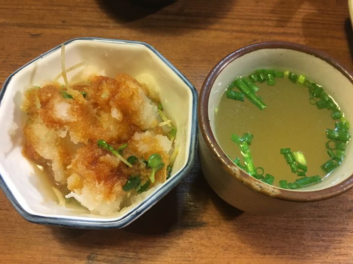 最後はおかわり無料の大根おろし3回目と無料鶏スープで〆。