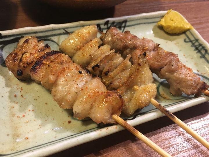 焼鳥の〆は、はつ、ねぎま。うみゃ〜!(いつもならばレバーとつくねのタレで〆るのですが、痛風的に危険なので我慢)