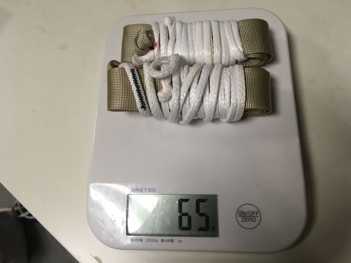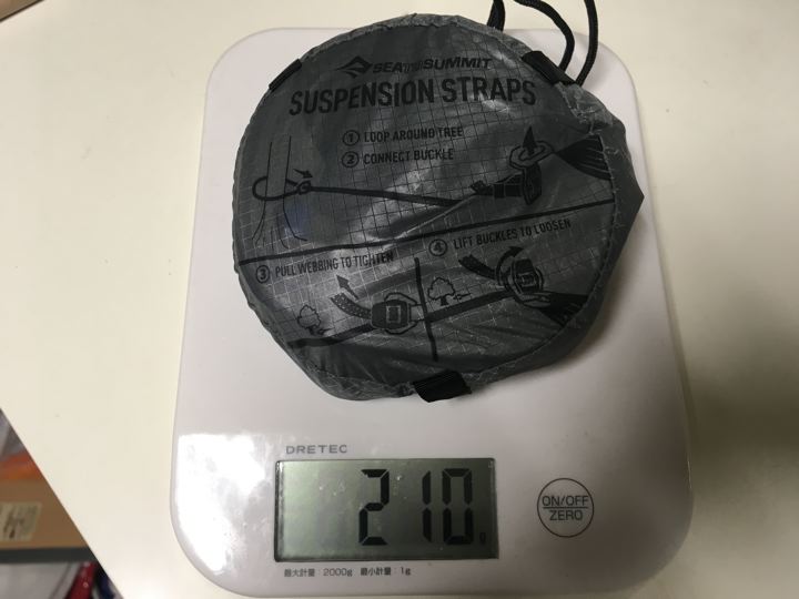 Sea to summit純正Suspension Straps は、210g(ハンモック本体より重たいなんて、ありえん!使い勝手は最高なのですが・・・)