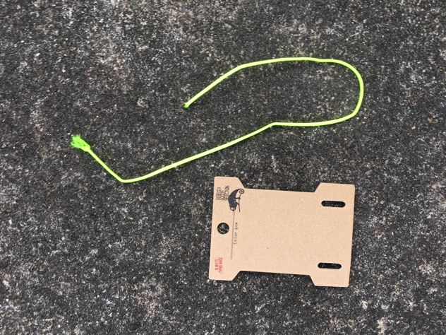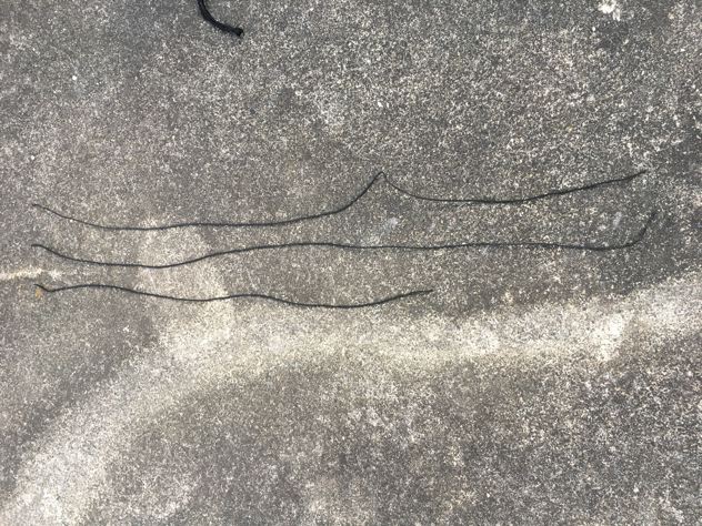純正品の長さを測って蛍光イエローゴムをカットします。