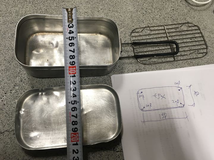 去年の9月末頃のお話。リョウさんの友達のダイゾウさんが鉄工所勤務で鉄板加工をしてくれるって事で、どうせならメスティンにジャストサイズの鉄板を特注しようと思ってみたのですが・・・。