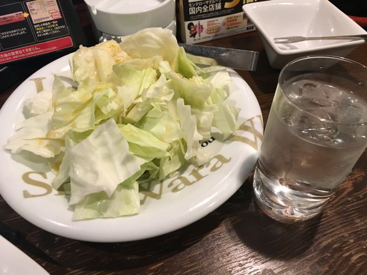 とりわさで〆。あとは無料のキャベツをひたすらお代わり〜!