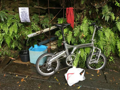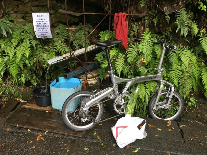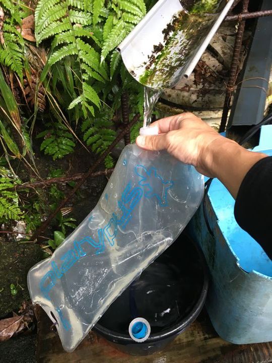 いつもの様に、坂の途中で相模の湧き水をプラティパスに汲みます。SAWYERなんて使いません。