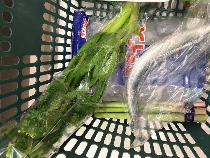 氷、セロリ、アスパラ、秋の秋刀魚をゲット。今回はクーラーもなしです。