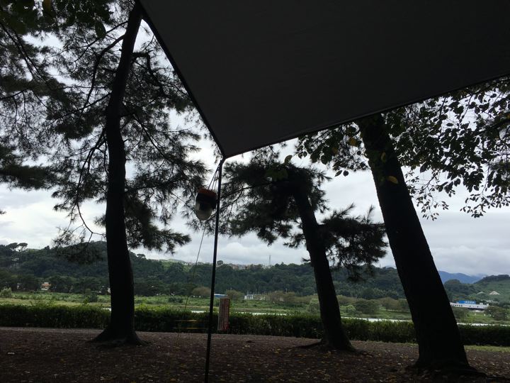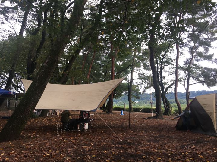 そして最小限タープを張ります。バッチリ〜!(色とか色とか色とか・・・)