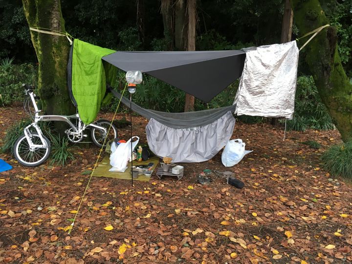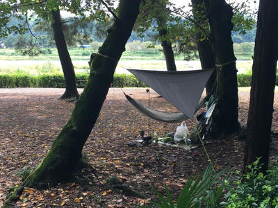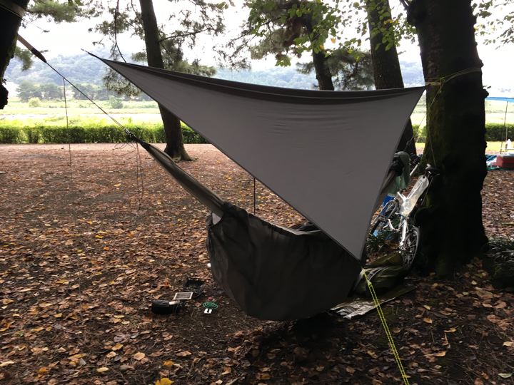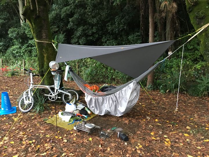 2017年9月末頃のお話。このシーズン最後の望地弁天キャンプ場にまたやって来ました。しかしよくキャンプ行くよなぁ。笑。まぁ、一応ここは私のホームグランドなので、ハンモックキャンプの軽量化の実験も兼ねて、ゆる〜く、やってみたのですが・・・(前回の台風は大変でした)