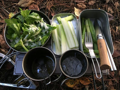 セロリの葉っぱはサラダにして、アスパラ茹でで、バーニャカウダ。このくらいの量でいいな。(以前は多過ぎました)