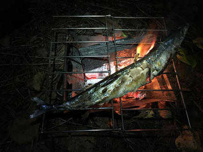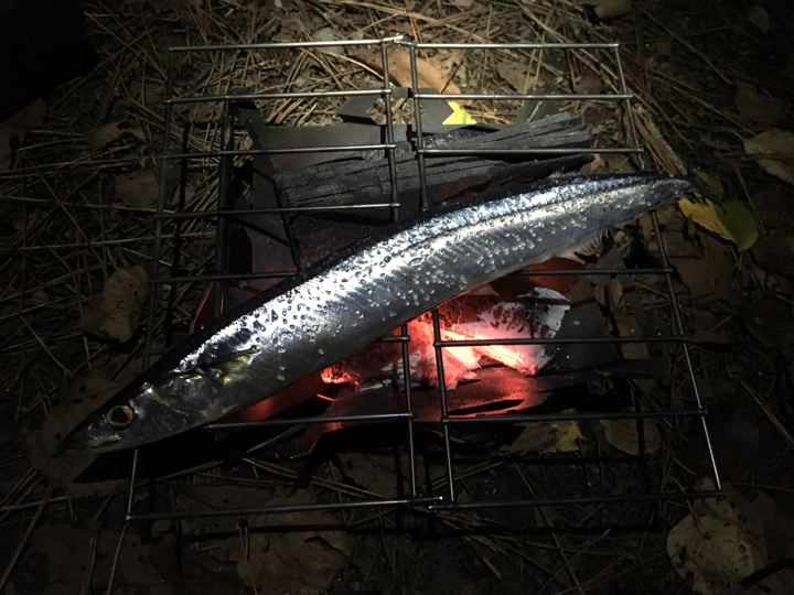 夜になったので、バーゴファイヤーボックスグリルに炭火起こして、秋の秋刀魚を焼きます!