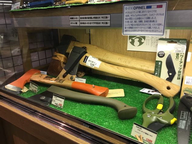 むむぅ。ホームセンターの鉈はでかくて重たい。